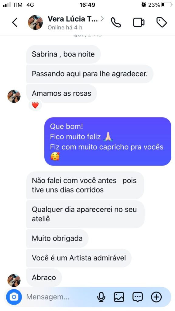 Com uma habilidade excepcional e um olhar atento aos detalhes, Sabrina se destaca na criação de peças únicas e encantadoras.